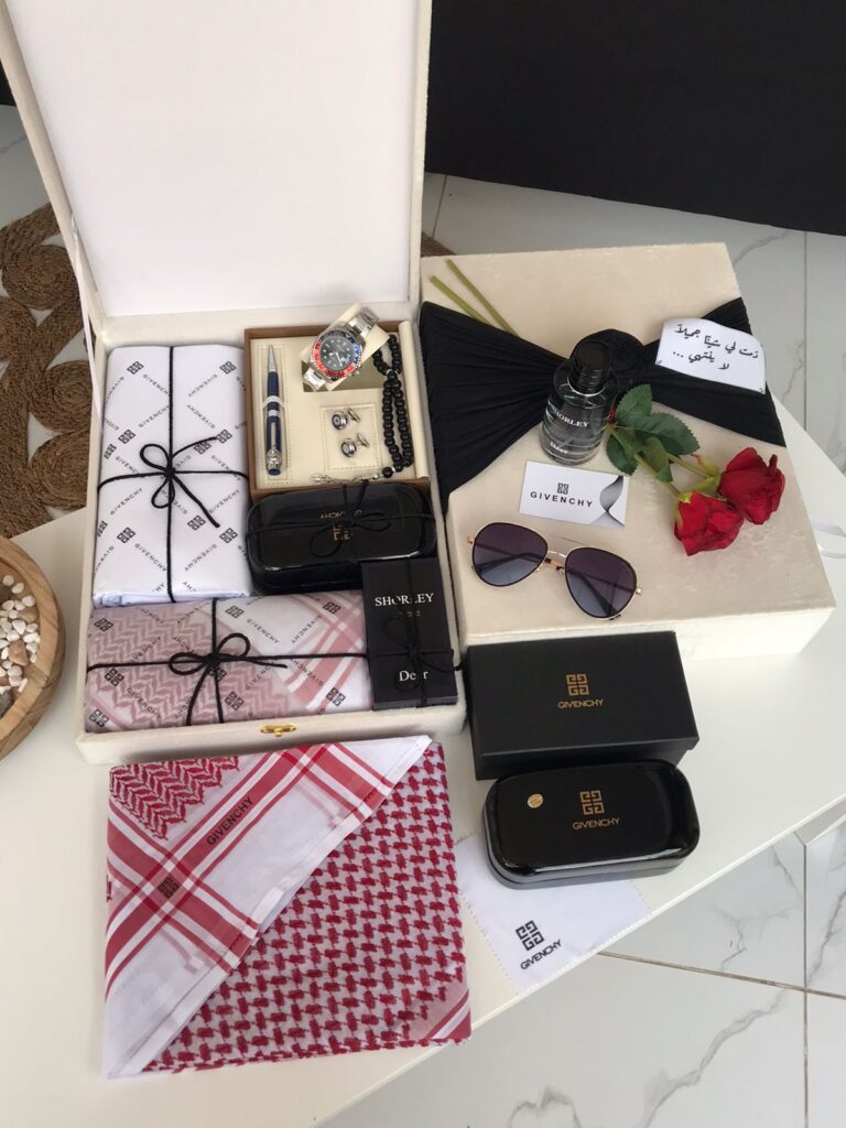 الطقم مكون من قماش جيفنشي مع الازرار واللوجو شماغ نظاره جيفنشي عطر شبيه ديور سوفاج ساعه شبيه رولكس قلم وكبك
